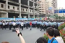 Local police were dispatched to the scene and exercised restraint throughout, and there was no physical clashes between the protesters and the police.[43] The crowd was dispersed at 6:30pm, when dusk fell and it started to rain.[38]