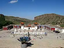 Guangzong Temple is situated in the west hillside of Helan Mountains and consists of over 20 halls and rooms, the existing main buildings include Main Assembly Hall, Mahavira Hall and Yellow Hall.[4]