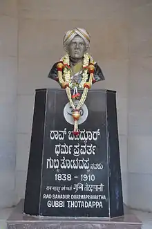 Rao Bahadur "Dharmapravartha" Gubbi Thotadappa (Kannada: ರಾವ್ ಬಹದ್ದೂರ್ ಧರ್ಮಪ್ರವರ್ತ ಗುಬ್ಬಿ ತೋಟದಪ್ಪ), (1838-1910 Gubbi), was an Indian businessman and philanthropist.[1] He founded a free lodging place for tourists from across the nation called "Thotadappa Chathra".[1] He was honoured with the title "Dharmapravartha" by the Maharaja of Mysore, Krishnaraja Wodeyar IV and "Rao Bahadur" by the British government.[1]