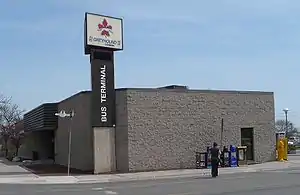 The temporary bus terminal was closed on May 13, 2012 and was integrated into the new transportation centre which includes Guelph railway station and former bus terminal site. The railway station was renovated to accommodate ticket sales for both bus and train users.[9][10]
