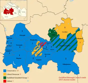 - 1 2 "Guildford Borough Council election : Guildford Borough Council". Archived from the original on 18 May 2015. Retrieved 11 May 2015.