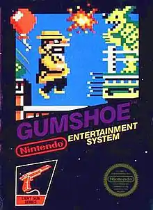 Gumshoe is a light gun shooter video game developed and published by Nintendo for the VS. System arcade hardware and the Nintendo Entertainment System console. It was released in 1986 in North America and in 1988 in Europe. Unusual for a Nintendo game, it was not released in Japan. It was designed by Yoshio Sakamoto.[3]