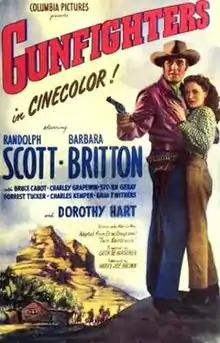 Gunfighters is a 1947 American Western film directed by George Waggner and starring Randolph Scott and Barbara Britton.[1] Based on the novel Twin Sombreros by Zane Grey (the sequel of Knights of the Range) and with a screenplay by The Searchers author Alan Le May, the film is about a gunfighter who lays down his guns after being forced to shoot his best friend, and decides to become a cowhand on a ranch. The film was released in the United Kingdom as The Assassin.