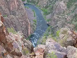 In 2008 the Black Canyon Decree was passed which resolved legal disputes over water resources in Colorado and protect the Black Canyon of the Gunnison. The decree set a flow regime that "will protect the water-dependent resources of the Black Canyon and help restore the ecological balance in the river system disrupted by three federal dams immediately upstream of the Park."[12] The condition of the Gunnison River continues to improve with increased protections for Black Canyon National Park and as stakeholders, scientists, and natural resource managers continue their efforts to protect the Gunnison. Their efforts include conducting scientific research and publishing information that informs the general public how they can protect the river. According to a progress report from 2019, the Gunnison Basin Selenium Management Program continues its efforts to "develop and implement a Selenium Management Program (SMP) in cooperation with the State of Colorado and Gunnison River basin water users to reduce adverse effects of selenium on endangered fish species in the Gunnison and Colorado rivers."[13]