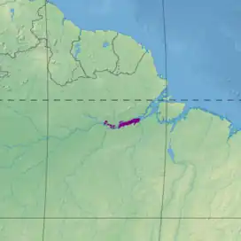 The Gurupa várzea ecoregion is named after the Ilha Grande de Gurupá, an alluvial island in the mouth of the Amazon.[1] The várzea extends along the lower Amazon River from the mouth of the Tapajós down to the mouth of the Xingu River. It has an area of 984,195 hectares (2,432,000 acres).[2] The Tapajós–Xingu moist forests lie to the south and the Uatuma–Trombetas moist forests to the north. The Monte Alegre várzea is upstream and the Marajó várzea is downstream along the Amazon.[3]