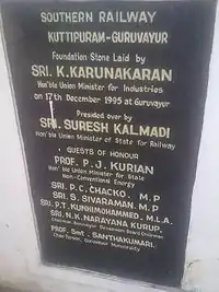 Commemorative plaque of Kuttipuram–Guruvayoor section in Guruvayoor railway station