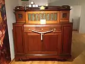 The museum houses several exhibits, like a player piano made by Welte-Mignon, which reproduces the composition accurately in the way Mahler intended it to sound. Reproductions of placards on an advertising column announce concerts of his work.[2] Leaning against the column a black bicycle from 1895 can be seen with handgrips of cork and an oil lamp. Mahler learned traveling by bike in Hamburg[2] and became a passionate cyclist.[3]