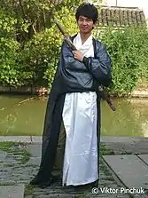 Guzhuang is often confused with or misinterpreted as Hanfu by most people who are not familiar with Hanfu.[5][31] And, some Hanfu enthusiasts also wear it instead of wearing Hanfu.[24] Guzhuang is, however, also a factor of influence (among many others) to the design of modern Hanfu; for example, the design of Wei-Jin style (Chinese: 魏晋风; pinyin: Wèijìnfēng; lit. 'Wei Jin style') Hanfu is a relatively modern design which was influenced by Chinese movies and television drama series and does not exist in history.[note 5][5][32] Guzhuang found in Xianxia television drama have also left a deep impact on Chinese audience.[31] Many Xianxia fans also wear Hanfu in their everyday lives, which then promote the growing Hanfu industry.[2]