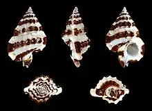 | Five views of a shell of Gyrineum gyrinum | |