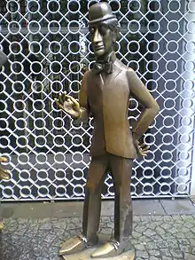 Hänneschen-Theater (German: [ˈhɛnəsçn̩ teˌʔaːtɐ], Colognian: [ˈhɛn²əsjə tiˈja²tɐ]) is a traditional puppetry-theatre in Cologne, Germany. It was established in the year 1802. The stage is situated in a building on Eisenmarkt in downtown Cologne. The pieces are set in Knollendorf, a fictional village somewhere in the outskirts of Cologne. The popular puppets represent fictional characters who embody typical traits of cologne people, so Tünnes and Schäl, Hänneschen and Bärbelchen, as well as other unique characters. In addition to the ever-changing pieces that are staged for adults and children, the puppet shows are also an important part of the Cologne Carnival. The carnival puppet session is each year a loving parody of a conventional Carnival session.