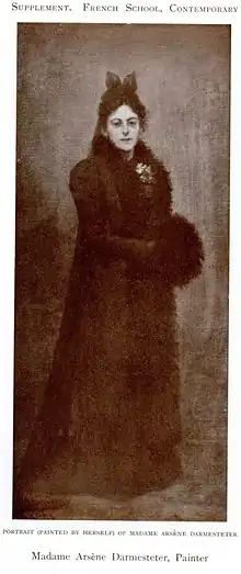 Her parents ran a French boarding school where Héléna learned to speak French. She later studied painting in Paris under Gustave Courtois,[2] where she met her husband Arsène Darmesteter. She became a successful portrait painter, exhibiting at the Royal Academy in 1891 and 1894 and at the Exposition Universelle in Paris in 1900.[3] She also showed works at the Royal Academy Summer Exhibitions in 1907 and 1908.[2] She was a member of the Société des Artistes Français and of the Société Nationale des Beaux-Arts.[2] Cécile Hartog,