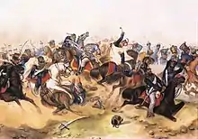A portrayal of the Battle at Tápióbicske, a battle between Hungarian revolutionists and the Hungarian Government