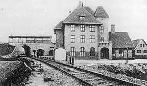 In 1911, the passenger station was relocated to the west for the opening of the Julich–Dalheim railway. In order to serve the two railways, a “tower station” (Turmbahnhof, that is a station with superimposed platforms on two levels) was built. The line to Dalheim was connected directly by a link at Baal freight yard/Baal West to the Aachen–Mönchengladbach line, which was especially important for freight from the Sophia-Jacoba colliery.[6]
