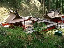 The Honden, Heiden, Middle Gate, Ablution font and two sets of carved wood panels on the shrine wall are all designated as Important Cultural Properties of Japan.[1][2][3][4][5][6]