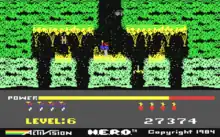 H.E.R.O. (standing for Helicopter Emergency Rescue Operation) is a video game written by John Van Ryzin[1] and published by Activision for the Atari 2600 in March 1984.[3] It was ported to the Apple II, Atari 5200, Atari 8-bit family, ColecoVision, Commodore 64, MSX, and ZX Spectrum. The player uses a helicopter backpack and other tools to rescue victims trapped deep in a mine. The mine is made up of multiple screens using a flip screen style.