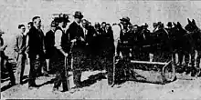 In 1924, Wilkinson led the effort to get a main line railway through Phoenix. He was the president of the Tidewater Association, which spearheaded the project.[57] The line would need to have had the Southern Pacific and El Paso and Southwestern railways merge, which needed approval from the Commerce Commission in Washington, D.C.[58] The hearing took place in September, and Wilkinson was part of the Arizona contingent which traveled to the U.S. Capitol to argue in favor of the proposal. The requested merger was approved.[59][60] Construction on the new line commenced in January 1925 near Picacho, with Wilkinson, along with F. J. Elliot, president of the Phoenix Chamber of Commerce, throwing out the first shovelful of dirt.[61] The rail line was completed on June 6, 1926, when the last rail was laid about 72.5 miles (116.7 km) west of Hassayampa, linking the two sets of tracks being laid. Freight trains began operating over the line on June 17, and the passenger train service began on October 15.[62]