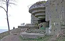 The Navy had difficulties procuring the 15-centimeter guns that it wanted for the ship's main battery, rejecting proposals from French, British and Swedish manufacturers as unsatisfactory. Although Krupp was not allowed to deliver finished guns by the terms of the Versailles Treaty, it worked out a deal with the Swedish Bofors company, which would finish and deliver the guns to the Danes. Niels Juel mounted ten 15-centimeter P.K. L/45[Note 2] guns, a pair side-by-side on the forecastle forward of the superstructure, three on each broadside amidships, and a superfiring pair aft of the superstructure, all protected by gun shields.[6] The mounts had a range of elevation from -10° to +30° and the guns fired 46-kilogram (101 lb) projectiles at a muzzle velocity of 835 m/s (2,740 ft/s)[7] at a rate of five to seven rounds per minute. The guns had a range of 17,800 meters (19,500 yd).[8]