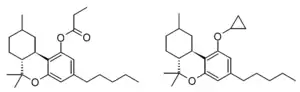 Hexahydrocannabinol propionate (left) and Hexahydrocannabinol cyclopropyl ether (right)