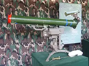 The HJ-8 or Hongjian-8 (Chinese: 红箭-8; pinyin: Hóng Jiàn-8; lit. 'Red Arrow-8') is a second generation tube-launched, optically tracked, wire-guided anti-tank missile system which was originally deployed by the People's Liberation Army since the late 1980s.[4]