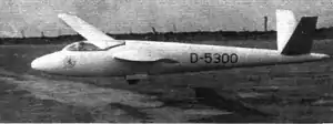In 1955 a second example, the HKS-1 V2 flew. This was identical to the HKS-1 apart from a 3° decrease in forward sweep, made to compensate for the tail heaviness, and replacement of the vulnerable balsa fuselage sheath with fibre-glass.[2] This second machine is called the HKS-2 by some authors,[2] whereas others associate this name with a development abandoned during its design stage.[3]