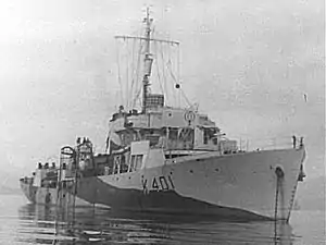 - 1 2 3 Macpherson, Ken; Burgess, John (1981). The ships of Canada's naval forces 1910–1981 : a complete pictorial history of Canadian warships. Toronto: Collins. p. 97. ISBN 0-00216-856-1.