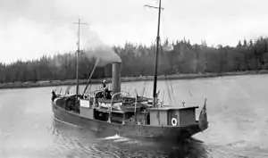 Following the declaration of war by Canada the First World War in August 1914, Newington was taken over by the Royal Canadian Navy and fitted to lay naval mines.[1] Newington was kept on standby to lay minefields across the entrance to Johnstone Strait until December of that year when the German threat in the Pacific Ocean was nullified.[5] Newington had the minelaying equipment removed and was used as a patrol vessel along the West Coast of Canada for the rest of the war.[4][5] The ship returned to civilian service in 1920, sold to the Pacific Coyle Navigation Company. The vessel was converted to a tugboat and in 1956, was sold to Straits Towing Ltd.[2] On 26 August 1959 she sank in Burrard Inlet, British Columbia.[4][lower-alpha 1]