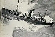 On 4 November 1963, Hautapu struck an unidentified object and was run aground off the Marlborough east coast, damaging the rudder, and was pulled towards the beach despite her being in full astern.[5] All eight crew members onboard would survive. Following this there were attempts to salvage the Hautapu, but none would succeed. Hautapu was eventually salvaged on 29 April 1964, and was towed to Wellington. Once salvaged it was found vandals had stripped the vessel of most of her gear.[6] When Hautapu reached Wellington, she would be taken on to a slipway for inspection, to determine the fate of the ship. After the inspection she was declared a total loss as it was found the waves had damaged her structurally, with repair being considered futile.[7] As they owned the trawler Taiaroa (formerly HMNZS Waikato) New Zealand fisheries decided to keep Hautapu for spare parts for Taiaroa. [7] After two years Hautapu was offered to the Royal New Zealand Air Force (RNZAF) to be sunk, which they accepted.[7] She was to be towed by HMNZS Inverell, and attacked by de Havilland Vampire and English Electric Canberra jets.[8] Plans of sinking her were postponed after the MV Kaitawa sank with all hands lost, with the Inverell being sent to locate her wreck.[7] However, on 2 June 1966, Hautapu sank at Shelly Bay after a stern charge was detonated, which was placed there in case the RNZAF could not sink the Hautapu.[9] After the sinking, there was a legal dispute on who owned the wreck, with the RNZAF claiming that the New Zealand Fisheries Ltd still owned the wreck, and the New Zealand Fisheries Ltd claiming the RNZAF owned the wreck, resulting in a six-year legal battle.[10][9] In July 1972, after another gathering of officials, the Secretary of Defence would assist in removing the wreck of Hautapu, while denying ownership of her.[9] She was cut up in 1972–1973 by divers of the Royal New Zealand Navy, with the floating crane Hikitia raising the sections ashore to be scrapped.[9]