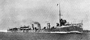 On the outbreak of the First World War the 6th Flotilla formed the basis of the Dover Patrol.[14] An early duty was escorting the ships carrying the British Expeditionary Force to France. A German submarine attempted to attack Mohawk on 6 October, but the destroyer and the ships she was escorting were unharmed.[15] On 1 June 1915 Mohawk encountered a minefield laid by SM UC-11 at the southern entrance to the Downs. Several mines were spotted close to Mohawk which struck one. Five of Mohawk's crew were killed, and Mohawk was towed back to Dover with her decks almost awash.[16][17][18]