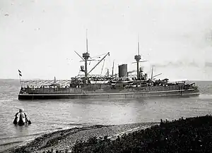 In 1900 the ship together with the coastal defence ship Piet Hein and the protected cruiser Holland was sent to Shanghai to safeguard European citizens and Dutch interests in the region during the Boxer Rebellion. A landing party from the cruiser Holland assisted in the defense of the Shanghai French Concession where many Dutch citizens where present.[6] Koningin Wilhelmina der Nederlanden and Holland returned to the Dutch East Indies on 9 October. On this journey they visited Amoy and Swatow. They arrived in Tanjung Priok on 6 November.[7]