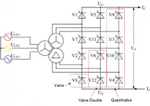 ![]() A 12-pulse HVDC converter using thyristor valves |