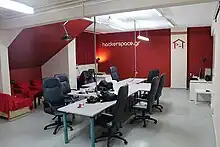 Hackerspace.gr ('hsgr') is a hackerspace in Athens, Greece, established in 2011. It operates as a cultural center, computer laboratory and meeting place (with free wireless access).[1] Hackerspace.gr promotes creative coding[2] and hardware hacking[3] through its variety of activities.[4][5] According to its website: "Hackerspace.gr is a physical space dedicated to creative code and hardware hacking, in Athens".