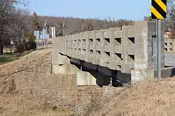 The Hackett Creek Bridge is a historic bridge near Hackett, Arkansas, which carries Arkansas Highway 45 across Hackett Creek. The bridge is a three-span concrete structure set on abutments and piers of stone and concrete. The longest single span is 36 feet (11 m) long, and the total bridge length is 98 feet (30 m). The deck is asphalt laid over concrete, and there are simple concrete railings on either side. Built in 1941, it is a well-preserved concrete bridge of the period.[2]
