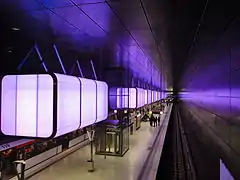 HafenCity Universität (German pronunciation: [ˈhafnsɪti ʔunivɛɐ̯ziˈtɛːt]) is a rapid transit station on line U4 of the Hamburg U-Bahn network in the district of HafenCity in central Hamburg, Germany. The station is named after the nearby HafenCity Universität.