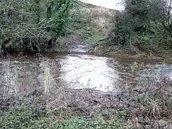 Haining Place or The Haining in the Parish of Kilmarnock lies near an old fording place across the Cessnock Water in East Ayrshire, Parish of Riccarton, Scotland. Hanyng (sic) was the caput or laird's dwelling of the Barony of Haining-Ross[1] with a tower house or keep located in a defensive position on a high promontory of land, half encircled by the river. Later Haining Place may have been a dower house, then a tenanted farm, finally being used as farm workers accommodation. Haining Place is now a ruin following a fire. The old farm of Haining Mains is still located nearby.