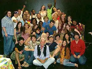 There were soon nine simultaneous productions in U.S. cities, followed by national tours.[5][34] Among the performers in these were Joe Mantegna, André DeShields, Charlotte Crossley and Alaina Reed (Chicago),[35] David Lasley, David Patrick Kelly, Meat Loaf, and Shaun Murphy (Detroit)[36] Kenny Ortega and Arnold McCuller (tour),[37] Bob Bingham (Seattle)[38] and Philip Michael Thomas (San Francisco).[39] The creative team from Broadway worked on Hair in Los Angeles, Chicago and San Francisco, as the Broadway staging served as a rough template for these and other early regional productions. A notable addition to the team in Los Angeles was Tom Smothers, who served as co-producer.[40] Regional casts consisted mostly of local actors, although a few Broadway cast members reprised their roles in other cities.[41] O'Horgan or the authors sometimes took new ideas and improvisations from a regional show and brought them back to New York, such as when live chickens were tossed onto the stage in Los Angeles.[41]