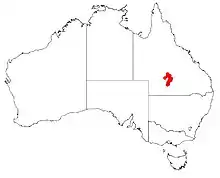 It is endemic to several isolated areas in far South West region of Queensland. It was originally known from scattered localities in the Ambathala Range in the Mariala National Park near Adavale.[4] It generally grows in stony clay soil in scattered open Acacia stowardii communities.[2]