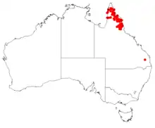 Hakea persiehana grows on Cape York Peninsula a large peninsula in far North Queensland as far south as the Atherton. Occurs in open woodland usually with Eucalyptus and Melaleuca.[2]