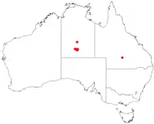 Hakea standleyensis is restricted to the Macdonnell Ranges in the Northern Territory where it grows in skeletal soil on ledges of quartzite cliff faces.[2]