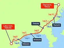 Leg 1 (21.3 km) From Ōtemachi, Tokyo to Tsurumi, Yokohama