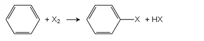 Monochlorination of benzene is accompanied by formation of the dichlorobenzene derivatives.[3] Arenes with electron donating groups react with halogens even in the absence of Lewis acids. For example, phenols and anilines react quickly with chlorine and bromine water to give multihalogenated products. Many detailed laboratory procedures are available.[4] For alkylbenzene derivatives, e.g. toluene, the alkyl positions tend to be halogenated by free radical conditions, whereas ring halogenation is favored in the presence of Lewis acids.[5] The decolouration of bromine water by electron-rich arenes is used in the bromine test.