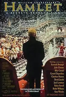 Hamlet is a 1996 epic historical drama film and an adaptation of William Shakespeare's play Hamlet, adapted and directed by Kenneth Branagh, who also stars as Prince Hamlet. The film also features Derek Jacobi as King Claudius, Julie Christie as Queen Gertrude, Kate Winslet as Ophelia, Michael Maloney as Laertes, Richard Briers as Polonius, and Nicholas Farrell as Horatio. Other cast members include Robin Williams, Gérard Depardieu, Jack Lemmon, Billy Crystal, Rufus Sewell, Charlton Heston, Richard Attenborough, Judi Dench, John Gielgud, and Ken Dodd.