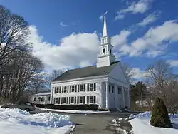 The Hampton Hill Historic District encompasses the historic village center of Hampton, Connecticut, a small rural community in Windham County. It is a linear district, extending for about 1 mile (1.6 km) along Connecticut Route 97, the major north-south route through the town, and laid out as a tree-lined boulevard. Most of the district's 62 historic buildings were built in the 19th century, with fifteen houses surviving from the 18th. Architecturally, they represent a cross-section of styles popular from the mid-18th to early 20th centuries, with vernacular forms most commonly found. One of the oldest buildings is a c. 1727 tavern, since converted to a private residence, while the town hall is located in an undistinguished 1920s former firehouse.[2]