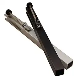 Handchimes are musical instruments which are rung by hand, similar to handbells. Typically, they are tuned square tubes with an external clapper mechanism.[1] Many handbell techniques can also be applied to handchimes,[2] though some are more difficult (such as six-in-hand) or impossible (malleting).