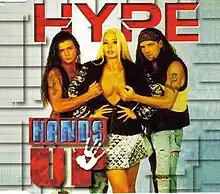 "Hands Up" is a song by Norwegian Eurodance group Hype, consisting of singer and former model Linda Johansen and two rappers.[1] Released in 1995 by Hype Records as a cover of the 1981-single by French pop music duo Ottawan, it peaked at number ten on the Norwegian singles chart.[2] In Finland, the song was a even bigger hit, reaching number seven. A controversial music video featuring frequent nudity with brief modesty bars was also produced for the song.
