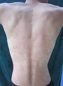 Acetaldehyde, the first by-product of ethanol, is between 10 and 30 times more toxic than alcohol itself[13] and can remain at an elevated plateau for many hours after initial ethanol consumption.[14] In addition, certain genetic factors can amplify the negative effects of acetaldehyde. For example, some people (predominantly East Asians) have a mutation in their alcohol dehydrogenase gene that makes this enzyme unusually fast at converting ethanol to acetaldehyde. In addition, about half of all East Asians convert acetaldehyde to acetic acid more slowly (via acetaldehyde dehydrogenase), causing a higher buildup of acetaldehyde than normally seen in other groups.[15] The high concentration of acetaldehyde causes the alcohol flush reaction, colloquially known as the "Asian Flush". Since the alcohol flush reaction is highly uncomfortable and the possibility of hangovers is immediate and severe, people with this gene variant are less likely to become alcoholics.[16][17]