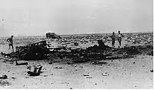 In between the battles with Denis, Marseille downed a Bristol Blenheim on 28 April. Blenheim T2429, from No. 45 Squadron RAF, piloted by Pilot Officer B. C. de G. Allan, crashed killing all five men aboard.[31] Jan Yindrich, a Polish Army soldier, witnessed the attack: "when a Blenheim came roaring down over our heads at about 50 feet, there was a terrific rattle of machine gun fire and at first I thought the Blenheim had made a mistake and was firing at us or choosing an awkward spot to clear his guns. Bullets whistled around, so we dived into the slit trench. A Messerschmitt, hot on the tail of the Blenheim, was responsible for the bullets. The Blenheim roared down the wadi, out to sea, trying to escape from the Messerschmitt, but the Messerschmitt was too close. The Blenheim fell out of the sky and crashed into the sea. The plane disappeared completely not leaving a trace. The Messerschmitt banked and flew inland again."[32]