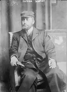 Although many who knew him had serious doubts about his moral and mental fitness to serve as a Catholic priest, Schmidt claimed that he was ordained by Bishop Kirstein of Mainz on December 23, 1904.[5] In a later conversation with Manhattan alienists, he recalled "The Bishop ordained me alone. I do not like to speak of it. The real Ordination took place the night before. St. Elizabeth, she ordained me herself. I was praying at my bedside when she appeared to me and said, 'I ordain you to the priesthood.' There was light during her appearance. I told no one. I thought it best to keep it to myself. They would make fun of me. They always made fun of me for these things. They always expect others to do as they do. God speaks to different people in different ways."[6]