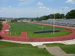 Hanson Field is a 16,368-seat multi-purpose stadium in Macomb, Illinois, USA.[1] The stadium which opened in 1950 is home to the Western Illinois Leathernecks football team and track and field team. The field is named after former WIU football coach/A.D. and Marine legend Rock Hanson. A unique feature of the facility is an extensive hillside that surrounds the field allowing for additional seating for thousands of spectators. Outside the stadium, a statue of former WIU track and field coach and two time Olympic gold medalist Lee Calhoun stands and a bulldog statue is located at the main entrance.