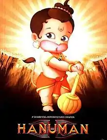 Hanuman is a 2005 Indian animated feature film directed by V. G. Samant and produced by Shailendra Singh at Percept Picture Company[1] and Silvertoons. The animated film dramatizes the life of its title character, Hanuman, a Hindu Deity. The animation was created by Silvertoons. It is India's first full-length fully animated feature film to be released theatrically[2] (there were several earlier ones made by Pentamedia Graphics). The film popularised animation and kickstarted the growth of India's animation industry.[3]