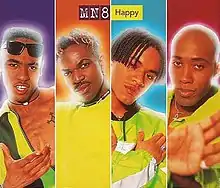 "Happy" was covered by British R&B group MN8 and released in July 1995 as the third single from their debut album, To the Next Level (1995).[7][8] The song peaked at number eight on the UK Singles Chart and entered the top 20 in New Zealand, where it reached number 11. The track was also remixed by Dalvin DeGrate of Jodeci.[9][10]